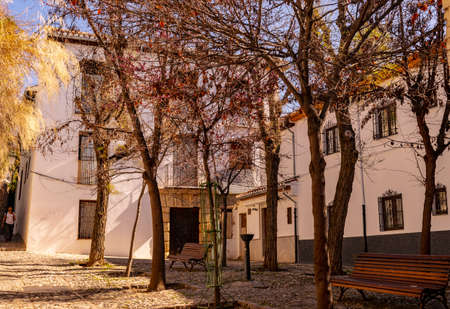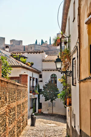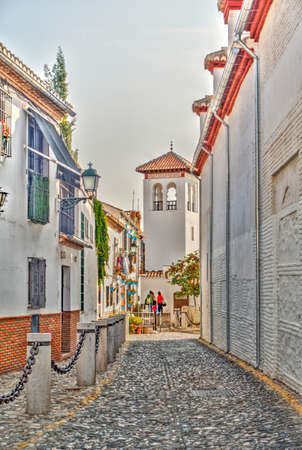 Street in the popular neighborhood of Albaicin in the city of Granada, in Andalusia, Spain