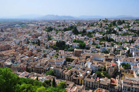 Panoramic view of the city of Granada (Spain) from the monument of the Alhambra.
