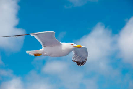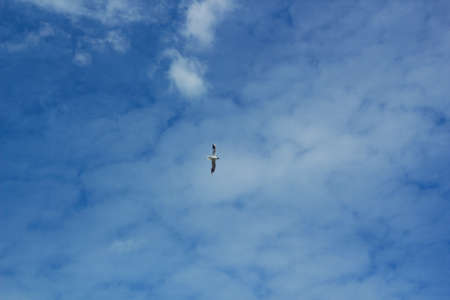 Flying seagull in the sky, a symbol of freedom and spaciousness