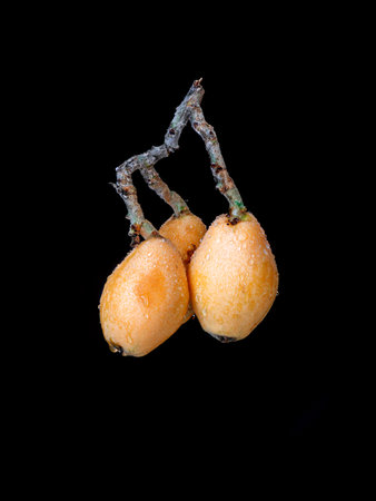 A closeup shot of loquat with black background