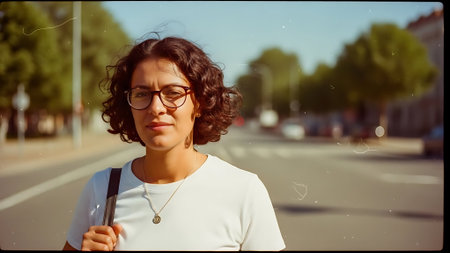 Adult White Woman with Blond Curly Hair 1990s style Illustration.