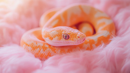 Vibrant Yellow Snake Against Pink Background A CloseUp Capturing Reptilian Elegance.