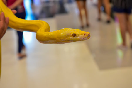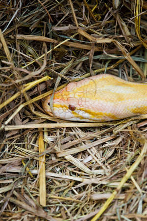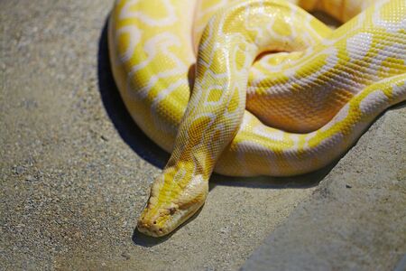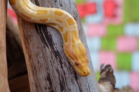 Close up of a yellow snake, Thailand. (Python reticulatus)