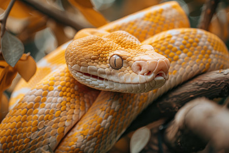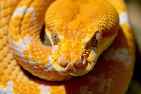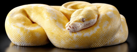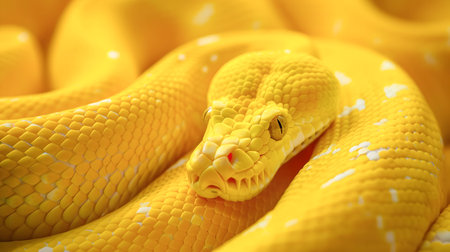 Captivating image of a beautiful yellow python coiled in a striking pattern showing its vibrant scales and captivating eye This exotic reptile is a stunning example of nature s beauty and power