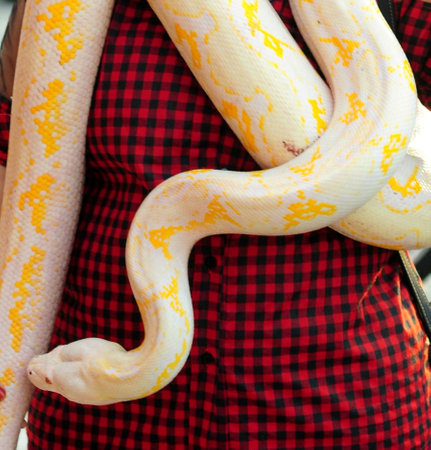 beautyful big size python anaconda white color yellow motif on floor