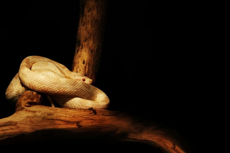 Albino Python coiled on branches