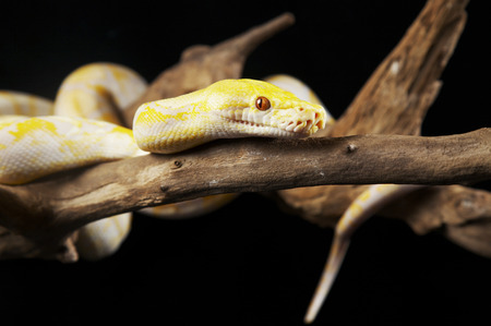 Beautiful Python molurus albina on tree branch.