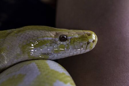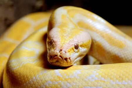 close up convoluted yellow python