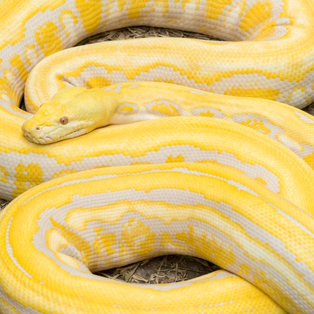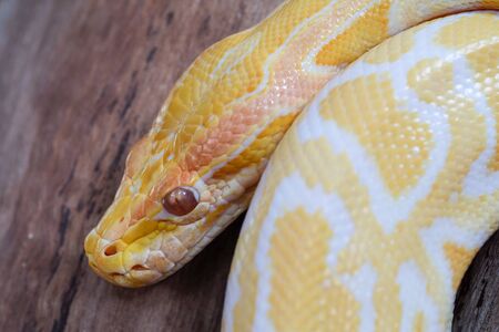 Gold Yellow Python, Albino snake with beautiful yellow skin snake texture close up. Reticulated python is non venomous snake.