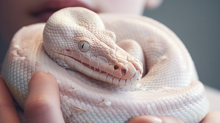 A person holding a white snake in their hands, AI