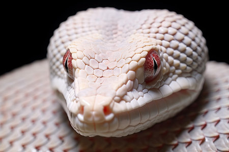 albino phyton head in the dark night