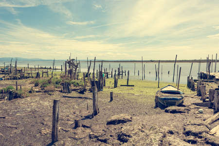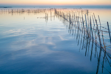 Detail of nets and traditional fishing equipment used in the Albufera Natural Park, Valencia, Spain