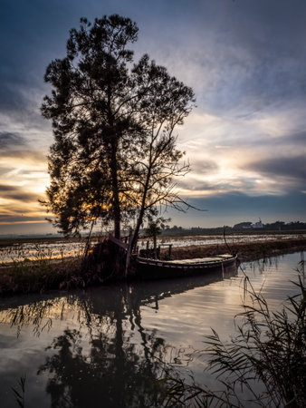 Beautiful sunset in the Albufera Natural Park, Valencia, Spain. High quality photo