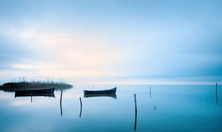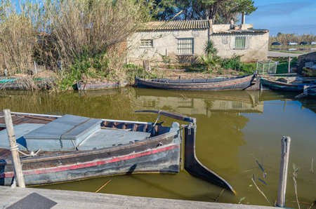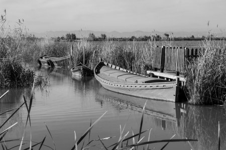 Traditional boats used by fishermen in the Albufera Natural Park, Valencia, Spain