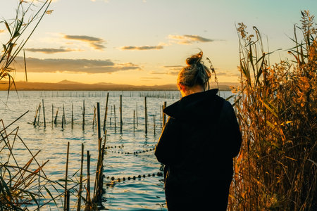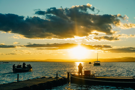 Photographers capturing stunning sunset views over the serene waters of Albufera Natural Park, a beautiful lagoon near Valencia, Spain