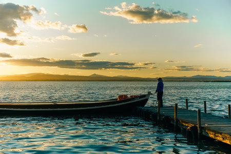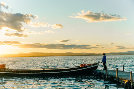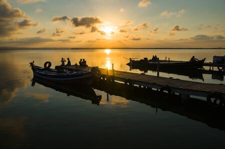 Fishing Boat Moored to a Pier at Sunset, Lagoon Valencia