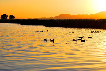 Spain. Sunrise in the El Hondo de Elche natural park. Alicante