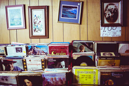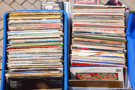 old Records, record Covers on a Flea Market Stall