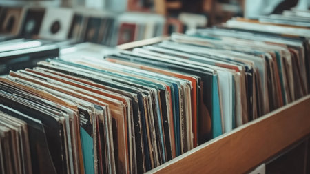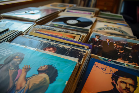 Discover a variety of classic vinyl records with unique album covers representing different music styles. Take a nostalgic journey through music history