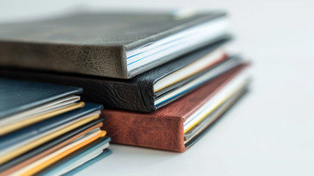 Row of sketchbooks for art and craft on a white background generative ai
