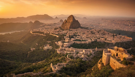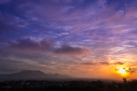 View of Table Mountain and Cape Town City at sunrise on a beautiful morning, Cape Town, South Africa