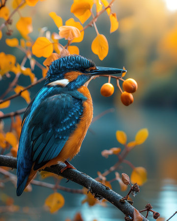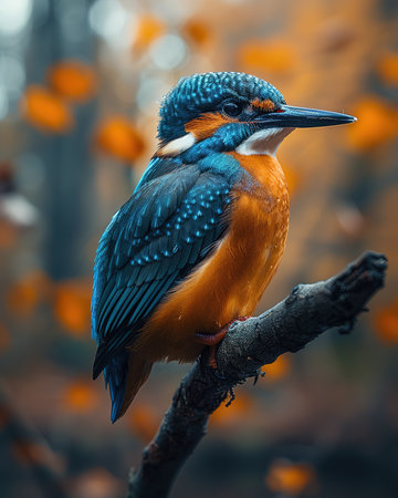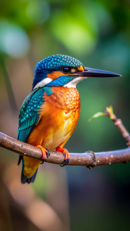 A stunning kingfisher perched on a branch, showcasing its vibrant plumage in a natural setting. Wildlife and birdwatching enthusiasts will love it.
