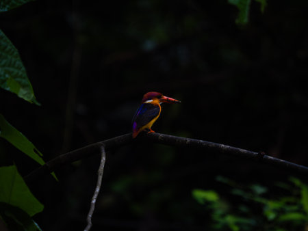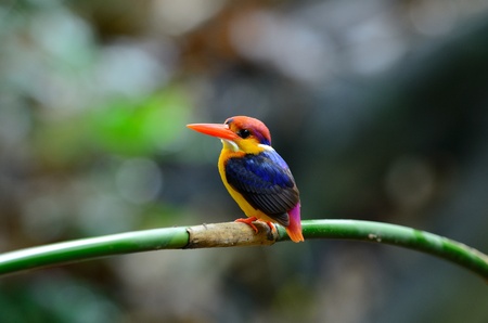 beautiful male Black-backed Kingfisher Ceyx erithacus sitting on branch at Kaeng Krachan National Park,Thailand