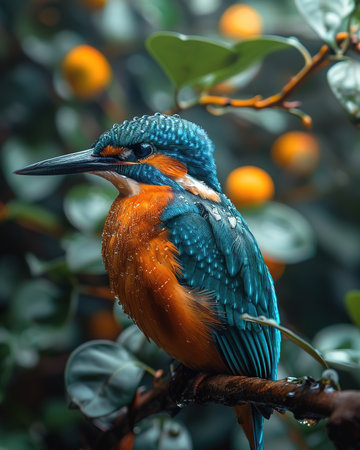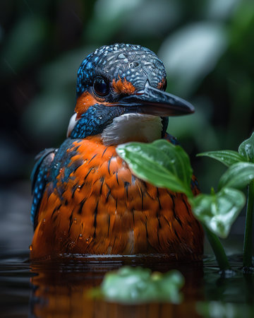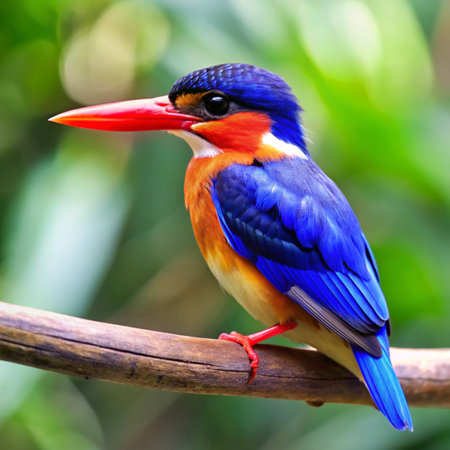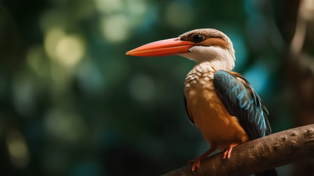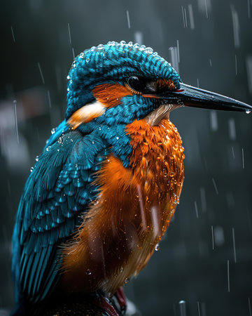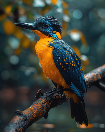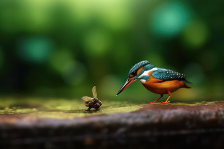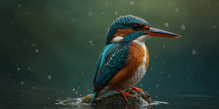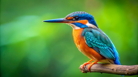 Stunning exotic bird portrait of kingfisher in natural habitat with vivid feathers