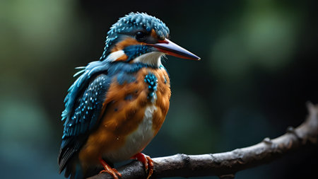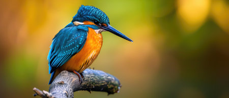 Image Of A Vibrant Kingfisher Perched On A Branch, Displaying Stunning Colors. Concept Nature Photography, Bird Watching, Colorful Wildlife, Kingfisher Beauty.