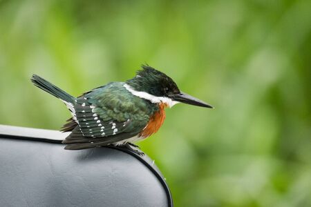 American pygmy kingfisher (Chloroceryle aenea) perched on a stick, Costa Rica
