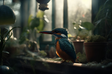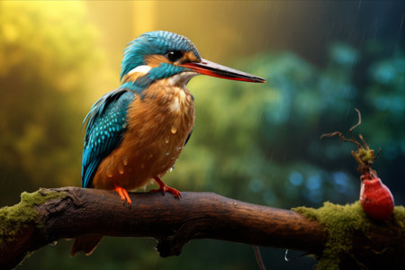 Generative AI : Common Kingfisher Alcedo atthismale rest on branch in nature