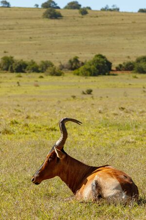 Red Hartebeest lying in the grass in the field.