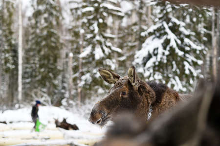 Elk on the Sumarokovskaya moose farm in Kostroma