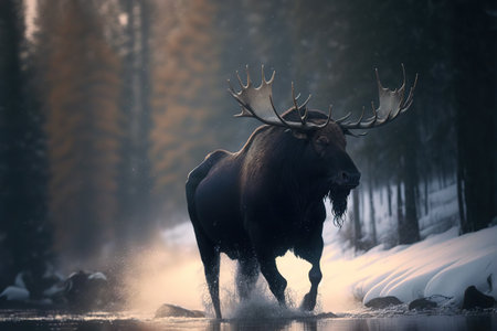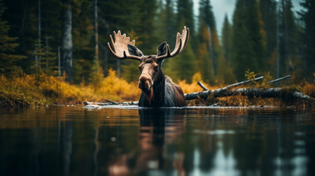 Beautiful moose walking forest lake nature wallpaper AI Generated Image