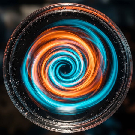 Colorful whirl. Universe eye. Blue liquid splash in circle frame on white ink round swirl paint spatters abstract illustration.