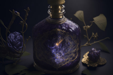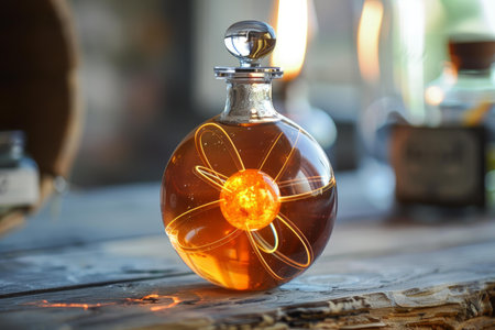 Enchanting glow: potion bottle with magical lights and mystical atmosphere.