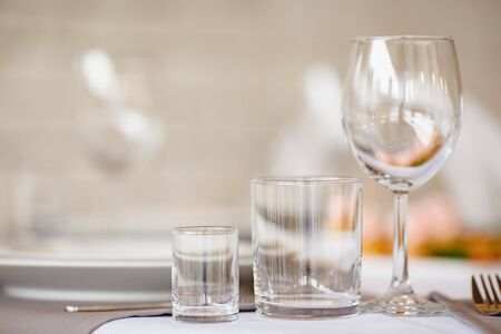 Empty glasses for wine and champagne in a row at the banquet table