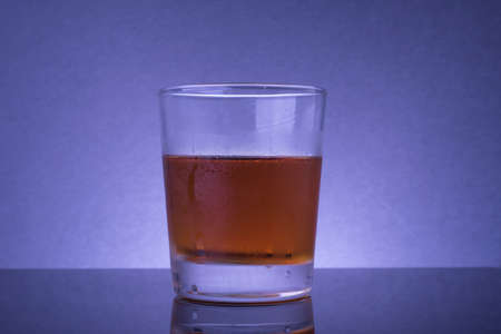 A glass of whiskey close-up, whiskey in a glass on a colorful background.