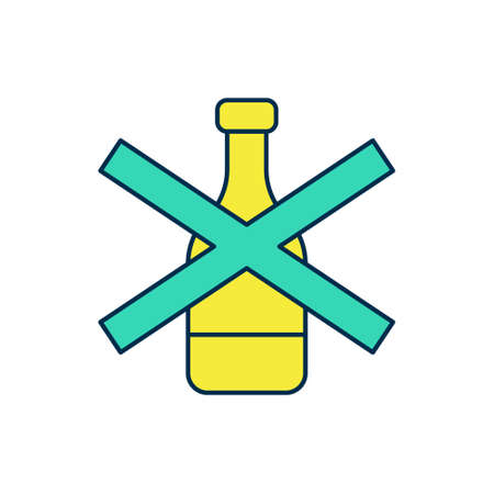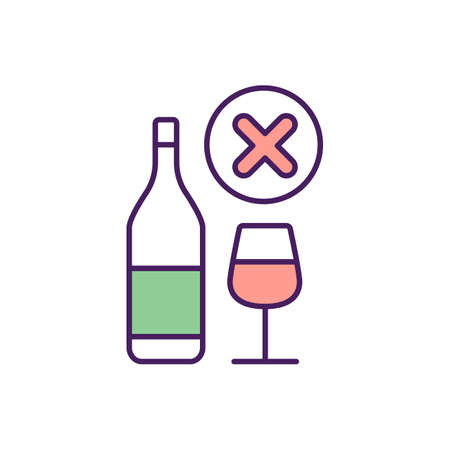 No alcohol RGB color icon. Isolated vector illustration. Fighting with alcoholism problem. Curing human addiction to drinkin alcohol simple filled line drawing.
