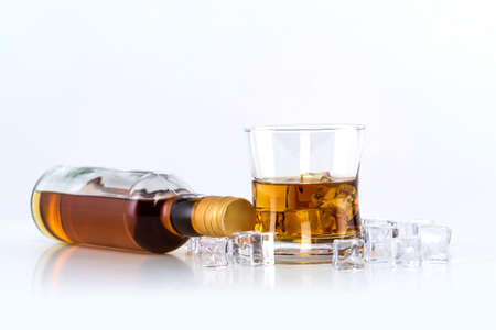 Excellent whisky served with ice cubes in a glass of Old fashioned type