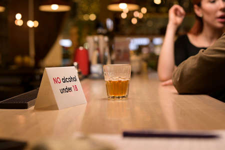 close-up of a sign on the restriction of the sale of alcohol due to the age of eighteen years
