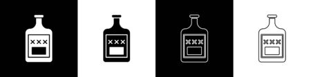Set Whiskey bottle icon isolated on black and white background. Vector Illustration