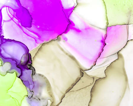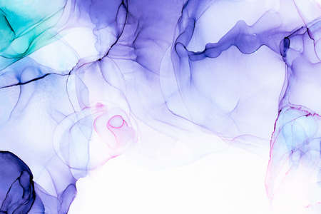 Alcohol ink. Artistic bright splash. Liquid artwork. Purple marble texture. Abstract ethereal swirl. Contemporary art. Abstract art background. Multicolored bright texture. Sophisticated illustration.