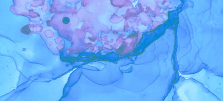 Abstract background in blue and pink color, hand drawn alcohol painting, liquid ink technique