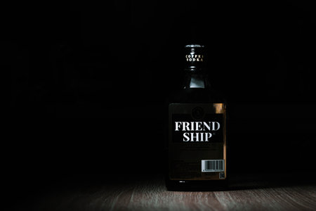 Hi-res photo of an Indonesian company made liquor from mix of arabica coffee and smooth vodka which packaged using black slim bottle
