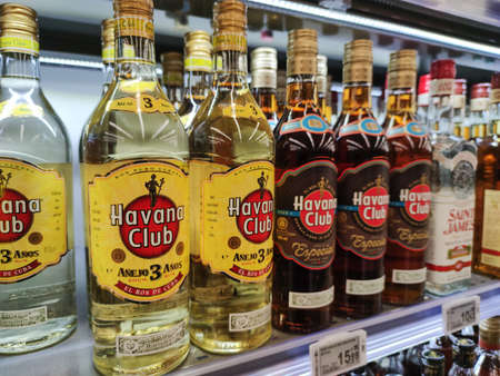 Illustrative editorial image of bottles of Havana Club rum for sale at French supermarket
