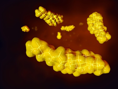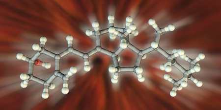 Molecule of cholesterol, 3D illustration. Cholesterol is a type of lipid, essential component of the cell membranes in mammals, its blood level is used as health indicator