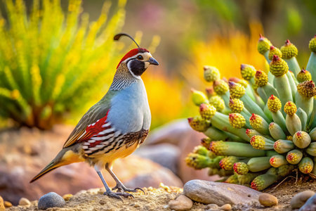 Gambel's Quail Panoramic: Desert Wildlife Bird in Native Habitat