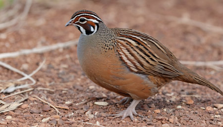 Brown Quails searching for food on ground