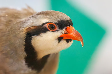 portrait of a colorful chukar over out of focus background (Alectoris chukar)